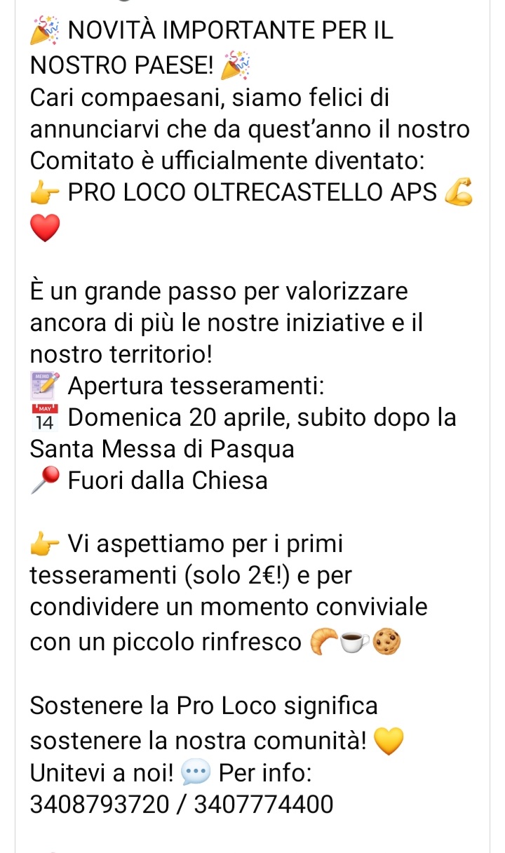 La Pro loco Oltrecastello APS ti dà il Benvenuto!